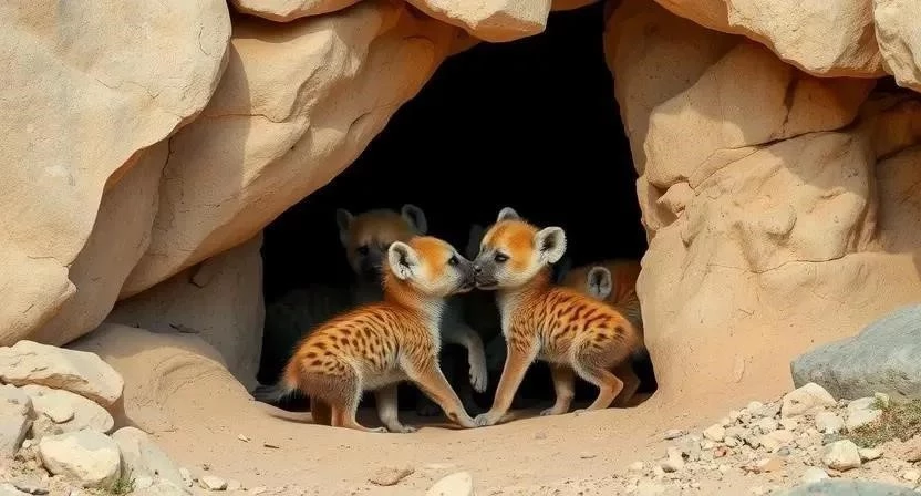 Брачный период у гиен обычно приходится на сухой сезон. Беременность длится около 110 дней. Самка рожает от 1 до 4 детенышей в логове, которое обычно располагается в норе или под скалой. Детеныши гиен рождаются слепыми и беспомощными и полностью зависят от матери. Самка кормит детенышей молоком и защищает их от хищников. Детеныши начинают принимать твердую пищу в возрасте около 3 месяцев и становятся самостоятельными в возрасте около 1 года. Воспитание детенышей – коллективная задача, в которой участвуют все члены стаи. Я читал, что гиены очень заботятся о своих детенышах и готовы защищать их даже ценой собственной жизни.