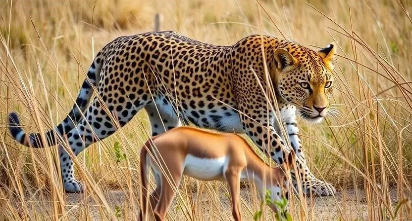Леопард – это универсальный хищник, который питается разнообразной добычей, включая антилоп, газелей, зебр, птиц и даже мелких млекопитающих. Он использует различные методы охоты, такие как подкрадывание, засада и преследование. Леопарды часто тащат свою добычу на деревья, чтобы защитить ее от гиен и других падальщиков.