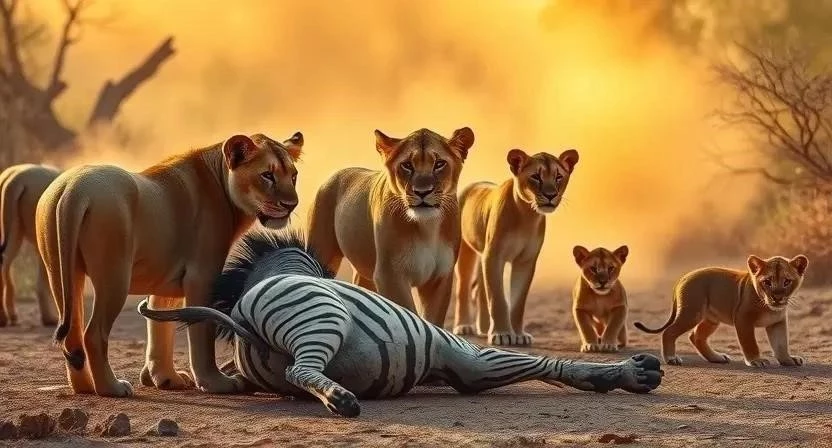 - Разделение добычи: Добыча делится между всеми членами прайда.