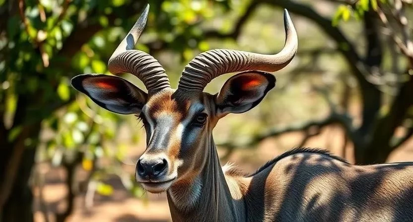 - Куду: Крупная антилопа с длинными витыми рогами.