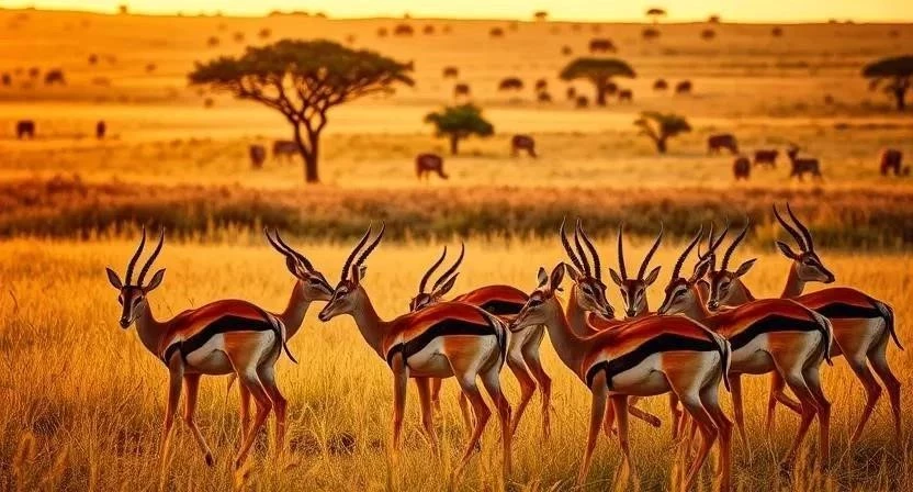 - Газель Томсона: Обитает в Восточной Африке, известна своей скоростью и массовыми миграциями.