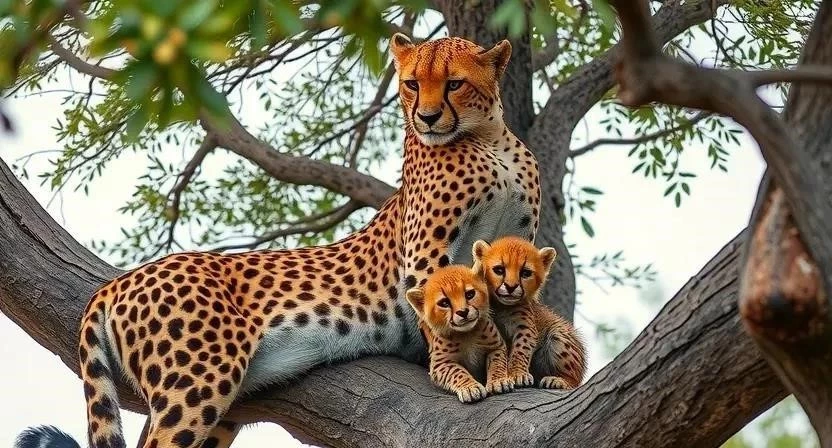 Беременность у гепардов длится около 90-95 дней. Самка рожает от 2 до 5 детенышей. Я помню, как наблюдал за самкой гепарда с ее детенышами – это было очень трогательно. Детеныши гепарда рождаются слепыми и беспомощными, и самка тщательно заботится о них, защищая и обучая охоте.