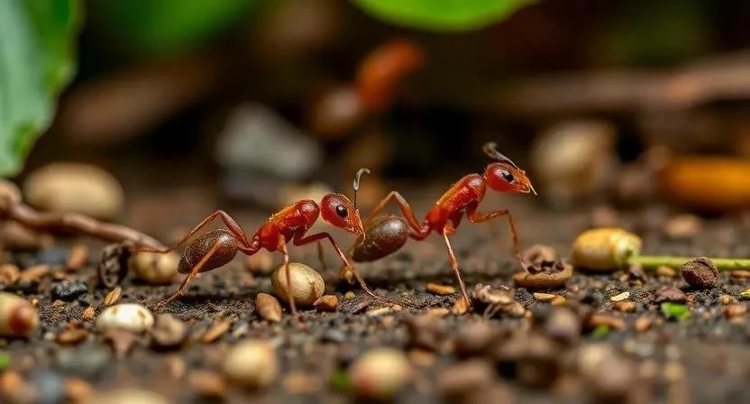 - Феромоны играют ключевую роль в коммуникации между муравьями.