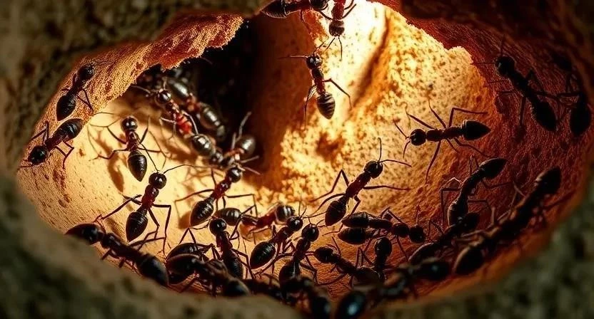 Муравейник – это сложная система подземных ходов и камер, в которой обитает колония муравьев. Строительство муравейника – это трудоемкий процесс, который требует слаженной работы всех рабочих муравьев. Муравьи выкапывают ходы и камеры, используя свои челюсти и лапки. Муравейник состоит из нескольких основных частей: камеры для матки, камеры для личинок, склады для хранения пищи и вентиляционные шахты. Вентиляция необходима для поддержания оптимальной температуры и влажности внутри муравейника. Муравьи тщательно следят за чистотой в муравейнике, удаляя мусор и мертвых особей. Муравейник – это не просто жилище, а сложная система, обеспечивающая выживание и процветание колонии.