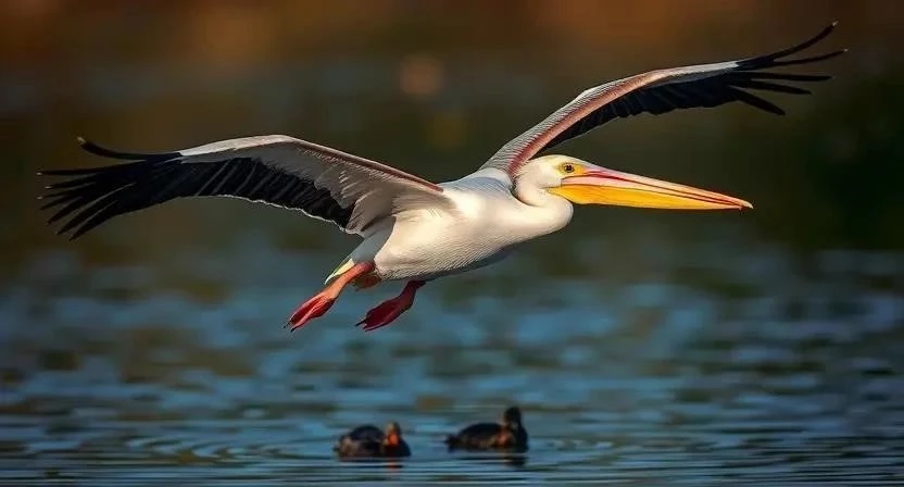 Пеликаны – это крупные птицы с размахом крыльев, достигающим 3 метров и более. Вес взрослой особи может варьироваться от 7 до 15 кг, в зависимости от вида. Окраска оперения варьируется от белого до серого и бурого, часто с розовыми или желтыми оттенками. Одной из самых заметных особенностей пеликанов является их огромный клюв с большим мешком под ним. Этот мешок используется для ловли рыбы и других водных обитателей. Клюв у пеликанов прямой, с крючком на конце. Ноги у пеликанов относительно короткие, с перепонками между пальцами, что делает их отличными пловцами.