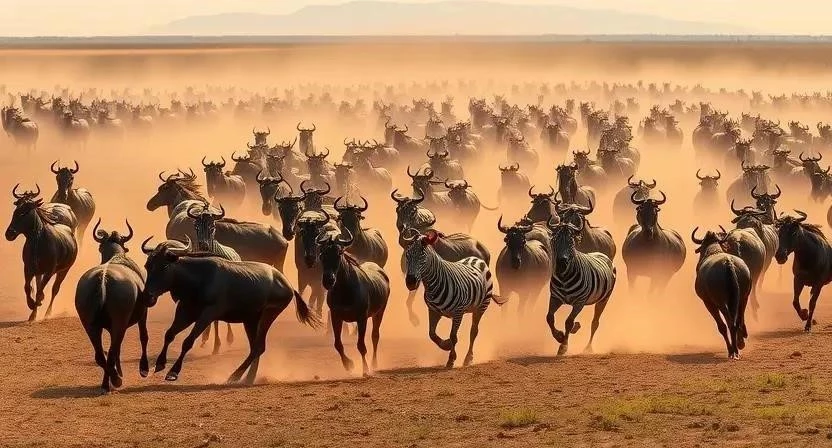 Великая миграция – это ежегодное циклическое перемещение огромных стад антилоп гну, зебр и газелей в поисках свежих пастбищ и воды в экосистеме Серенгети-Масаи Мара. Это грандиозное событие, в котором участвует более двух миллионов животных, делая его самым масштабным наземным передвижением на Земле. Основными участниками являются антилопы гну, зебры, газели Томпсона и Гранта, но миграция привлекает и множество других животных, включая хищников, таких как львы, гепарды, гиены и крокодилы.