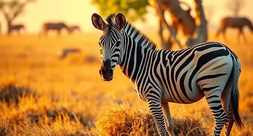 - Маскировка: Полосы помогают зебрам сливаться с окружающей средой и затрудняют хищникам выбор жертвы.