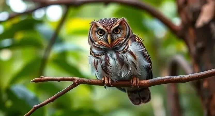 Амазонский сычик – это небольшая сова с округлой головой и большими желтыми глазами. Длина тела составляет около 13-15 см, размах крыльев – около 20-22 см. Окраска оперения варьируется от серо-коричневого до рыжевато-коричневого, с темными пятнами и полосками. Сычик ведет преимущественно ночной образ жизни, охотясь на мелких грызунов, насекомых и других беспозвоночных. Он обладает отличным слухом и зрением, что позволяет ему обнаруживать добычу даже в полной темноте. Я однажды слышал характерный крик амазонского сычика в ночном лесу – это было очень необычно и запоминающеся.