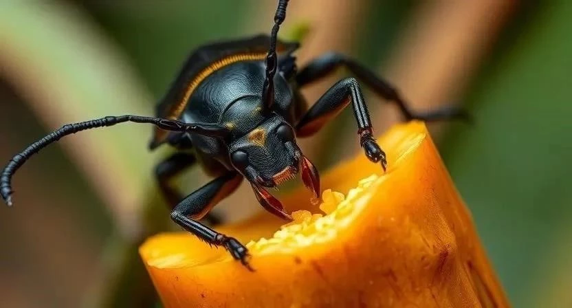 Амазонский жук-кожаное крыло – всеядный вид, питающийся как растительной, так и животной пищей. Взрослые жуки обычно питаются листьями, цветами, плодами и корой деревьев. Личинки же, как правило, являются хищниками, питаясь другими насекомыми, червями и гусеницами. Жуки играют важную роль в экосистеме, участвуя в разложении органических веществ и контролируя численность других насекомых. Они также являются пищей для птиц, рептилий и млекопитающих. Пищевые предпочтения жука-кожаного крыла зависят от его вида и стадии развития. Разнообразие питания позволяет жукам выживать в различных условиях и адаптироваться к изменениям окружающей среды.
