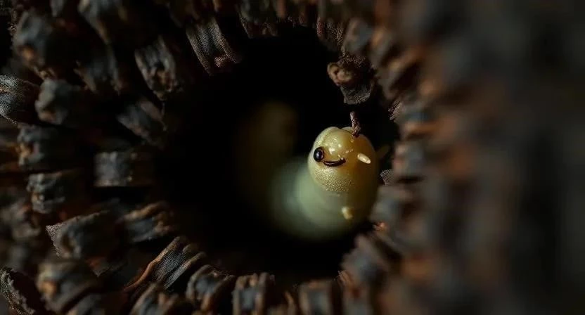 Жизненный цикл амазонского жука-пильщика состоит из четырех стадий: яйцо, личинка, куколка и взрослая особь. Самка откладывает яйца в древесину, где из них вылупляются личинки. Личинки растут и развиваются, питаясь древесиной. После нескольких линек личинка превращается в куколку. Куколка находится в древесине в течение нескольких недель, после чего из нее вылупляется взрослая особь. Взрослые особи живут несколько месяцев, в течение которых они размножаются и откладывают яйца. Весь цикл занимает от нескольких месяцев до года, в зависимости от климатических условий и доступности пищи. Я был поражен тем, как быстро личинки жука-пильщика растут и развиваются.