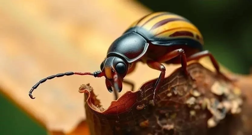 Амазонский жук-улитка (Chalepus spp.) – это небольшое насекомое, достигающее в длину от 7 до 15 мм. Его тело имеет овальную форму, напоминающую раковину улитки. Основная особенность этого жука – это его надкрылья, которые значительно расширены и покрывают почти все брюшко, создавая иллюзию раковины. Окраска надкрыльев варьируется в зависимости от вида и может быть зеленой, коричневой, желтой или даже черной. Такая окраска помогает жуку маскироваться среди листвы и веток деревьев. Голова жука небольшая, с хорошо развитыми усиками и глазами. Ноги короткие и приспособлены для передвижения по листьям и веткам. Внешне жук-улитка действительно очень похож на маленькую улитку, что и дало ему такое название. Это насекомое – яркий пример эволюционной адаптации к окружающей среде.