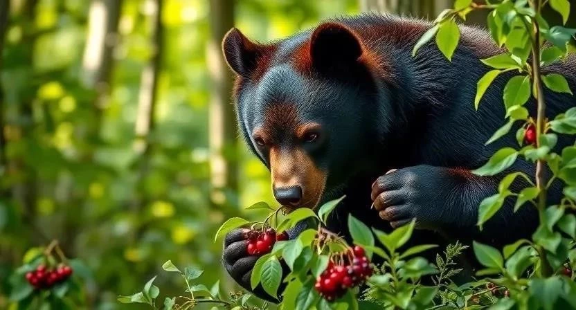 Рацион черного медведя очень разнообразен и зависит от сезона и доступности пищи. Эти медведи всеядны и питаются как растительной, так и животной пищей.