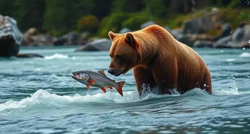 Гризли – всеядный хищник, рацион которого зависит от сезона и доступности пищи. Основу его питания составляют растительные продукты, такие как ягоды, корни, травы и орехи. Также гризли охотится на различных животных, включая лосося, оленей, лосей, карибу и мелких грызунов. Не брезгует падалью и может разорять пчелиные ульи ради меда. Гризли обладает мощными когтями и челюстями, которые позволяют ему добывать пищу и защищаться от врагов.
