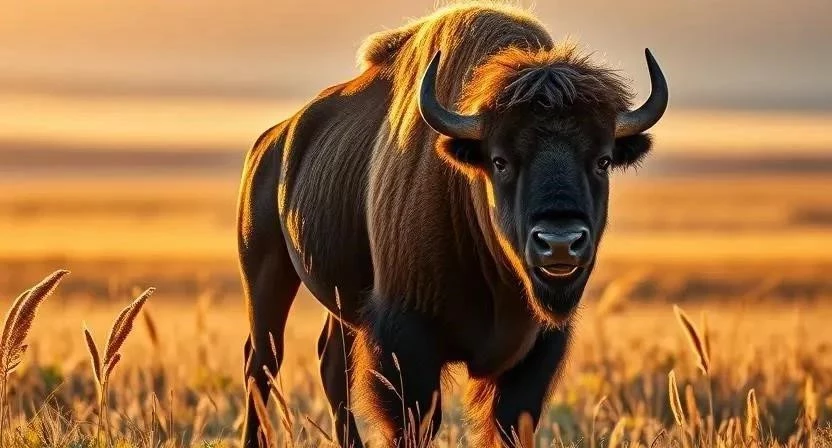 - Бизоны: Питаются травой, пасутся стадами, мигрируют в поисках лучших пастбищ.