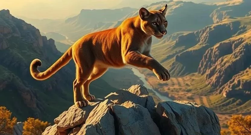 - Мощный прыжок: Пума совершает мощный прыжок, чтобы схватить добычу.