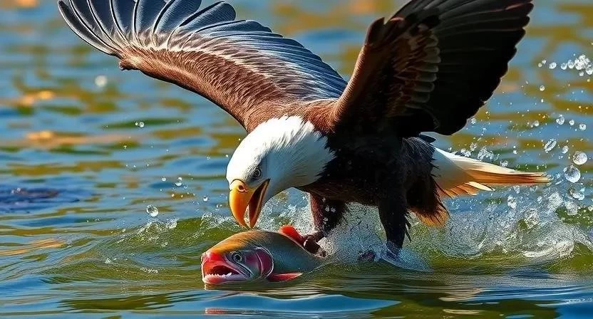 Орлан – это хищная птица, охотящаяся на рыбу. Он парит в небесах, высматривая добычу, и стремительно пикирует вниз, хватая рыбу своими мощными когтями. Сокол – это еще одна хищная птица, охотящаяся на птиц. Он использует свою скорость и острое зрение, чтобы преследовать и ловить добычу в полете.