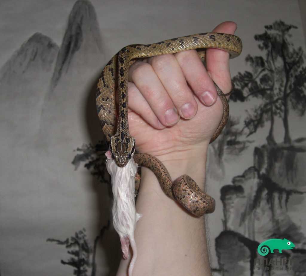 При кормлении живыми мышами и крысами, следите, чтобы КО не повредил змею. Это касается грызунов, уже открывших глаза. Знаете, в борьбе за жизнь крыса или мышь могут быть очень агрессивными.