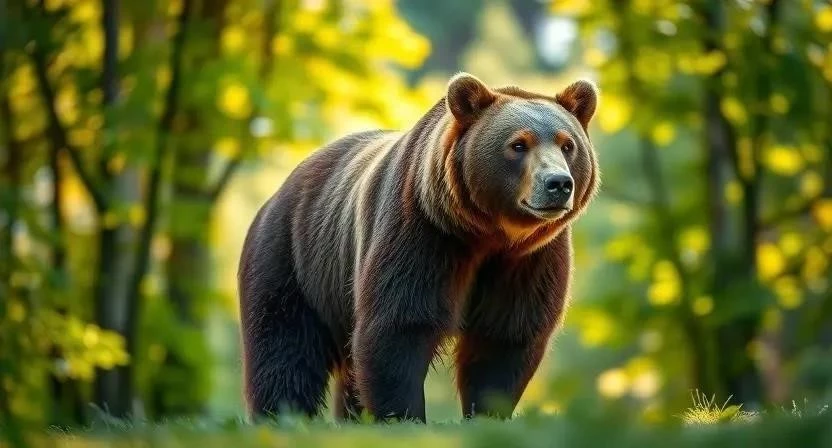 - Бурый медведь: Всеядный, впадает в спячку зимой.