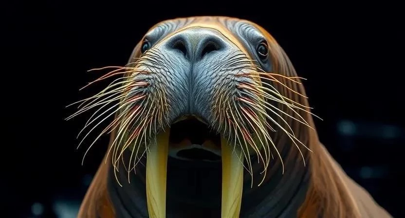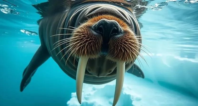 Морж – это крупное животное с мощным телом, покрытым толстым слоем подкожного жира, который защищает его от холода. Самцы значительно крупнее самок. Бивни – это удлиненные верхние клыки, которые используются для защиты, добычи пищи и подъема на лед. Усы, или вибриссы, помогают моржу находить пищу в мутной воде.