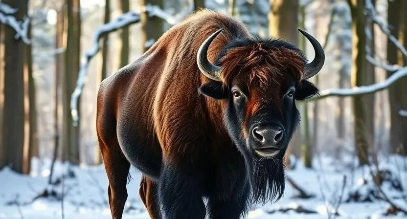 Европейский бизон, или зубр, – это самый крупный наземный зверь Европы. В прошлом он был практически истреблен, но благодаря усилиям по разведению и реинтродукции его численность постепенно восстанавливается. Зубр занесен в Красную книгу Международного союза охраны природы (МСОП) и Красную книгу Республики Беларусь. Я помню, как в детстве видел зубров в заповеднике, и это было невероятное зрелище – мощные животные, символизирующие дикую природу.