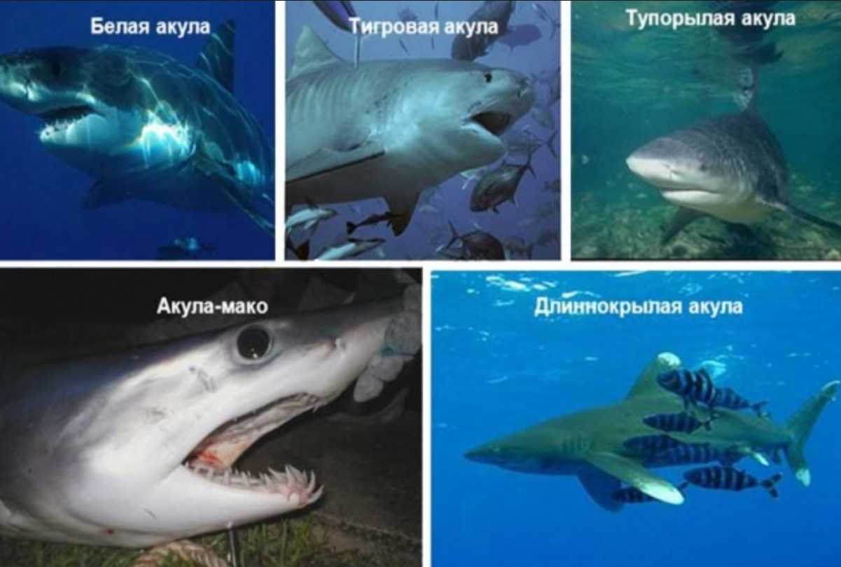 Китовая акула, достигающая в длину 20 м и весящая более 15 т, отличается очень миролюбивым нравом, в отличие от других акул она питается планктоном. Чтобы обеспечить себя достаточным количеством пищи, ей приходится за 1 час процеживать через жабры более 1,5 т воды. В список опасных для человека акул входит около 30 видов, а больше всего жертв на счету тигровой акулы, белой акулы и акулы-молота.
