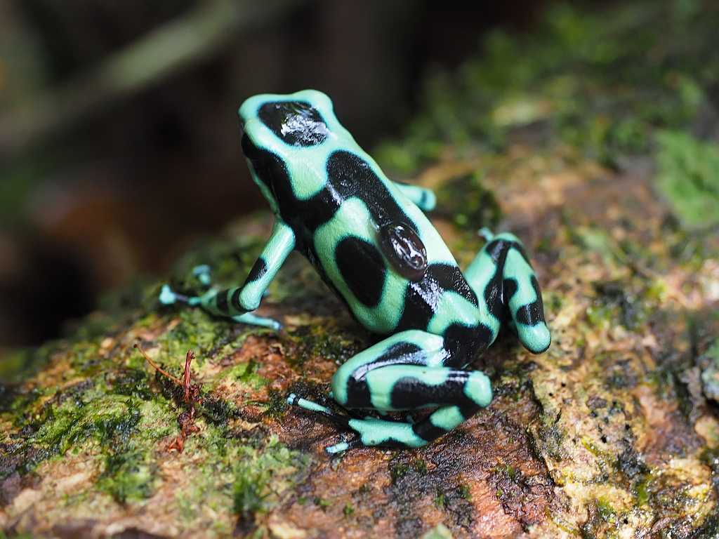 а вот пятнистый древолаз (Dendrobates tinctorius),