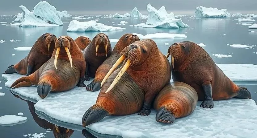 Моржи – это крупные морские млекопитающие, обитающие в арктических водах. Они обладают толстым слоем жира, который защищает их от холода, и длинными бивнями, которые используют для выкапывания добычи со дна моря и для защиты. Моржи питаются моллюсками, червями и другими беспозвоночными, которых они находят на морском дне. Они живут большими группами, образуя колонии на льдинах и берегах. Социальная структура моржей сложна и включает в себя иерархию и ритуалы ухаживания.