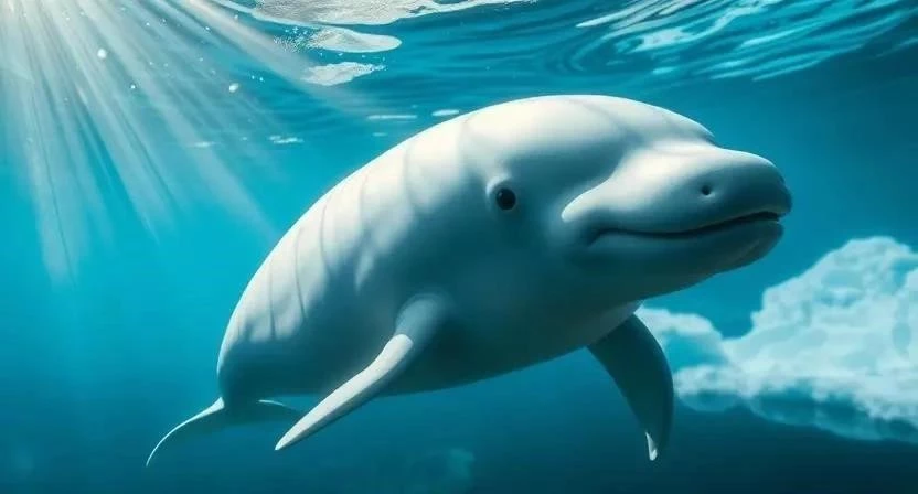 Белуха – это средний по размеру кит, достигающий в длину 3,5-5,5 метров. Самцы обычно крупнее самок. Вес взрослой особи колеблется от 1,5 до 2 тонн. Окраска белухи, как следует из названия, белоснежная, хотя молодые особи рождаются темно-серыми и постепенно светлеют с возрастом. У белухи нет спинного плавника, что является адаптацией к жизни в арктических водах, позволяющей ей легко перемещаться под льдом. Голова белухи округлая, с характерным «лобом», который может быть покрыт небольшими выростами. Особое строение шеи позволяет белухе поворачивать голову в разные стороны, что облегчает поиск пищи и ориентацию в пространстве.