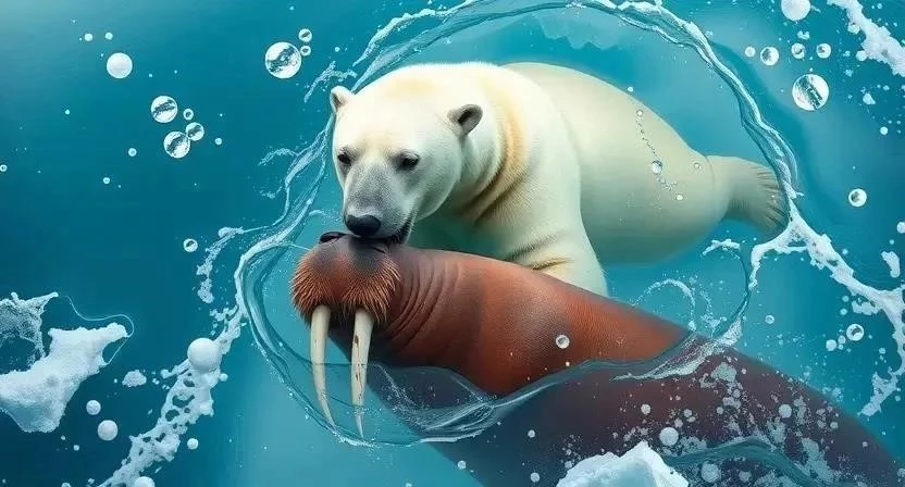Охота на моржей – это более сложная и опасная задача для белого медведя. Моржи – крупные и сильные животные, способные защищаться. Белые медведи обычно охотятся на моржей, когда те выходят на берег, чтобы отдохнуть или погреться на солнце. Медведь может подкрадываться к моржу, используя неровности рельефа и растительность в качестве укрытия. Когда медведь приближается к моржу, он может нанести удар лапой или попытаться схватить его за бивень. Охота на моржей часто заканчивается травмами для медведя, поэтому они предпочитают охотиться на тюленей, когда это возможно. Однажды я видел, как медведь пытался атаковать моржа, но тот отбился и серьезно ранил медведя.
