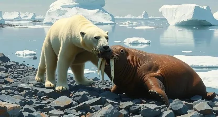 Охота на моржей – более сложная задача, чем охота на тюленей. Моржи – крупные и сильные животные, которые могут оказывать серьезное сопротивление. Белые медведи часто нападают на моржей на суше или в воде, используя свою силу и когти. Иногда они охотятся группами, чтобы увеличить свои шансы на успех. При нападении на моржей медведи стараются нанести удар в голову или шею, чтобы быстро обезвредить жертву.