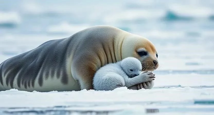 Беременность у тюленей длится около 11 месяцев. Роды обычно происходят на льду, в специально вырытых родовых норах или просто на ровной поверхности. Новорожденные тюленята покрыты густым белым мехом, который помогает им сохранять тепло в суровых условиях. Вес новорожденного тюленя варьируется в зависимости от вида, но обычно составляет около 10-20 кг. После рождения самка активно заботится о своем детеныше, кормя его молоком и защищая от хищников. Я наблюдал, как самка тюленя Уэдделла самоотверженно защищала своего детеныша от морского леопарда, рискуя собственной жизнью.