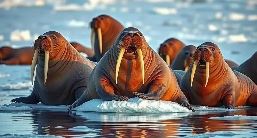 Моржи – крупные морские млекопитающие, известные своими длинными бивнями. Они обитают в прибрежных водах Арктики и питаются моллюсками, которых добывают со дна моря. Моржи живут группами, образуя социальные структуры. Бивни используются для защиты, добычи пищи и подъема на лед. Основной угрозой для моржей является изменение климата, которое приводит к сокращению площади льда, необходимого для отдыха и размножения.