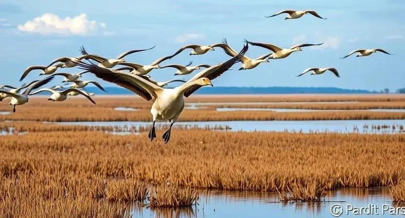- Изменение климата: Изменение климата приводит к изменению миграционных путей и сокращению мест обитания гусей.