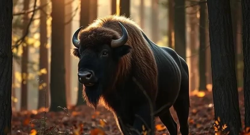 Зубр – это самый крупный наземный зверь Европы. Внешне он напоминает бизона, но отличается более стройным телосложением и длинной бородой. Высота в холке самцов достигает 180-195 см, вес – 600-900 кг. Самки немного меньше. Окрас зубра темно-коричневый, зимой шерсть становится более густой и длинной.