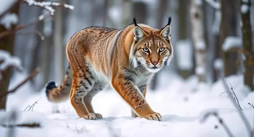 Рысь – это средняя по размеру кошка, обладающая мускулистым телом и относительно короткими лапами. Окрас шерсти варьируется от светло-серого до рыжевато-коричневого, часто с темными пятнами и полосами. Зимой шерсть становится гуще и светлее. Характерной особенностью рыси являются кисточки на ушах, которые, вероятно, служат для улучшения слуха. У нее короткий хвост с черным кончиком. Взрослые особи могут достигать длины тела до 100-130 см и весить от 8 до 15 кг. Самцы обычно крупнее самок.