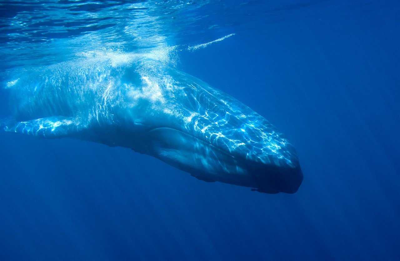 Цвет синего кита, как ни удивительно, не синий, а, в основном, серый, но с голубым оттенком. И синим млекопитающее прозвали потому, что когда смотришь на кита сквозь воду, но он кажется именно синим, ну или голубым. При этом, плавники и брюхо животного светлее, чем остальное тело. Обитают синие киты и в теплых, и в холодных водах. Это полярные и тропические моря. У созданий нет зубов, но, несмотря на это, они питаются всякой мелкой морской живностью, к примеру, планктоном или маленькой рыбешкой. Для пропитания у самого большого кита в мире есть «китовый ус». Это приспособление, которое напоминает больше щетку или огромное сито. Оно способно пропускать через себя ненужные для питания элементы, а кроме этого, отфильтровывать воду. Синий кит не может съесть человека, даже если очень сильно захочет. Поэтому млекопитающее считается почти безопасным для человека. Однако, обитатель морей и океанов легко может перевернуть водное судно средних размеров, причем не специально, а просто случайно задев.