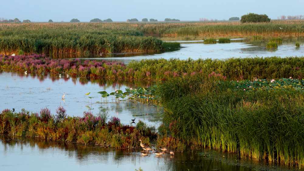По завершении затопления на пойменных равнинах быстро начинают расти представителями флоры. Сильно расходится по всей территории заостренная, прямоколосая, пузырчатая осока. От нее не отстают бобовые травы, к которым принято относить горошек, клевер, люцерну.