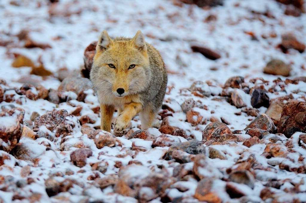 | Тибетская лисица | Эндемик Тибетского нагорья | 5,5 кг | Длина — 60 см | Спина светло-коричневая, бока окрашены в серый цвет |