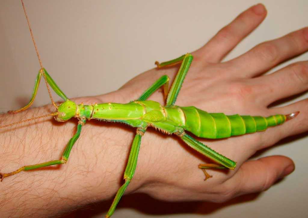Его размер просто шокирует: длина туловища с лапками достигает 60 сантиметров! Но вот вес палочника не такой впечатляющий и составляет всего 63 грамма.