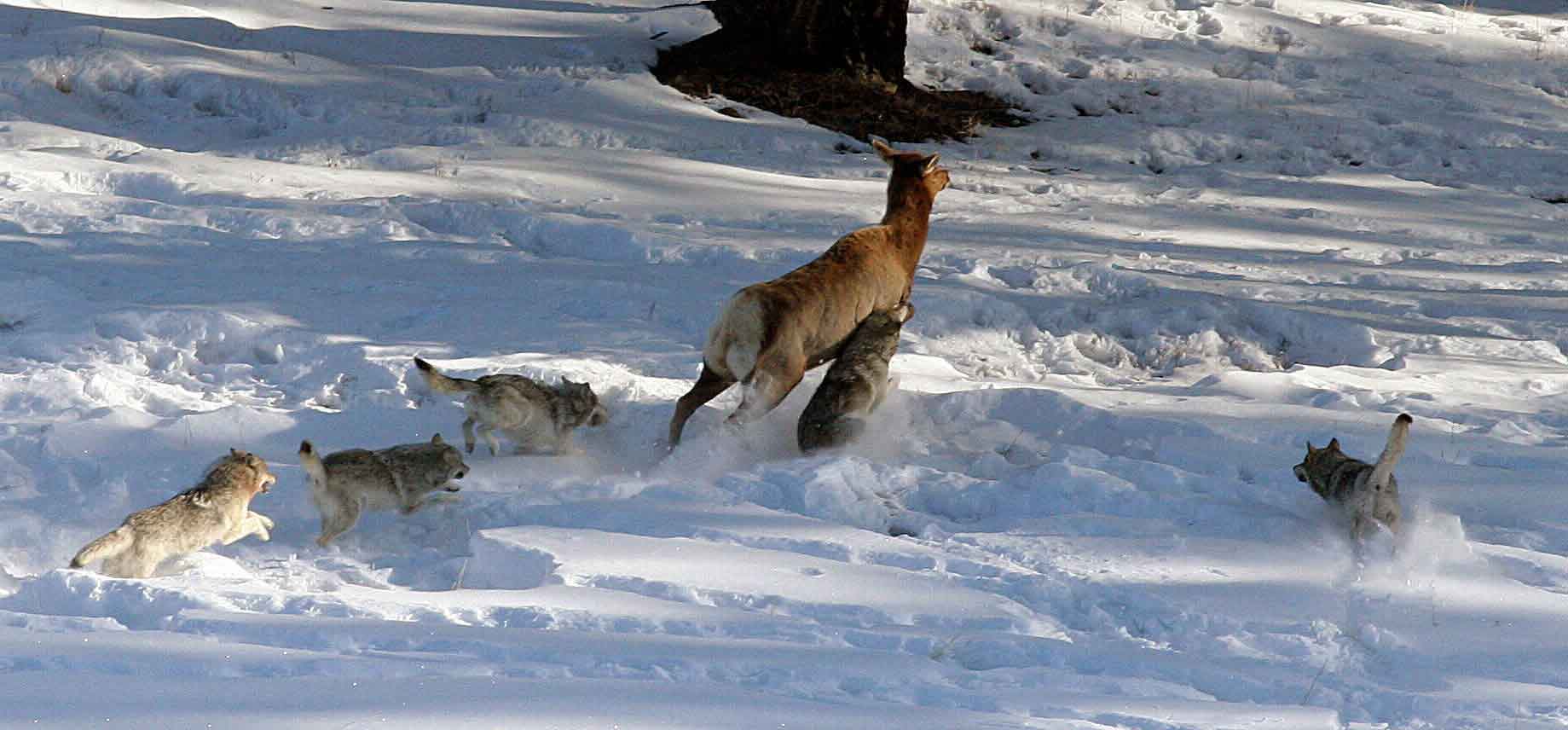 Принципы охоты волка очень разнообразны. В зимнее время волки охотятся коллективно на крупных копытных животных. Такой вид охоты волки применяют именно зимой. Главным преимуществом зимней охоты волка является наличие снежного покрова, по которому он с легкостью передвигается. Копытным животным снег значительно затрудняет возможность уйти от волка – дикого и хищного животного.