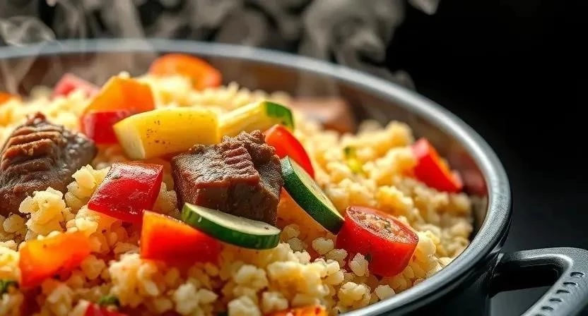 | Кускус с мясом | Кускус, мясо, лук, морковь, томатная паста, специи | 45 минут |