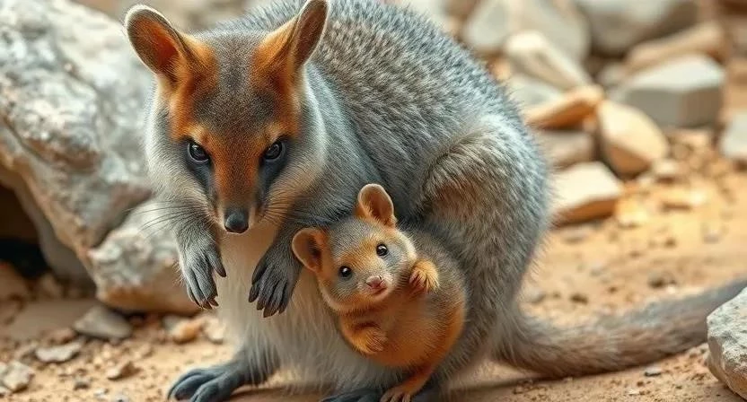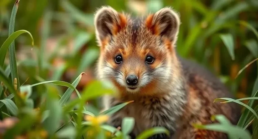 Квокка – небольшое животное, размером с домашнюю кошку. Ее телосложение компактное, с короткими, сильными лапами. Шерсть короткая, густая и мягкая, обычно серо-коричневого цвета. Мордочка короткая, с округлыми ушами и характерной «улыбкой», создаваемой строением лицевых мышц. Квокки обладают длинным, цепким хвостом, который помогает им удерживать равновесие при лазании по деревьям.