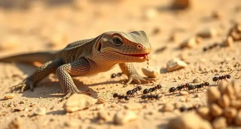 Молох – специализированный хищник, питающийся в основном муравьями. Он может съедать до нескольких тысяч муравьев в день. Особенностью питания молоха является его уникальный способ захвата добычи. Ящерица медленно приближается к муравейнику, а затем быстро вытягивает свой липкий язык, покрытый слюной, и собирает муравьев. Муравьи прилипают к языку, и молох заглатывает их целиком. Слюна молоха содержит специальные ферменты, которые нейтрализуют яд муравьев. Кроме муравьев, молох может питаться другими мелкими насекомыми, такими как термиты и жуки. Он не нуждается в большом количестве воды, так как получает влагу из тела своих жертв.