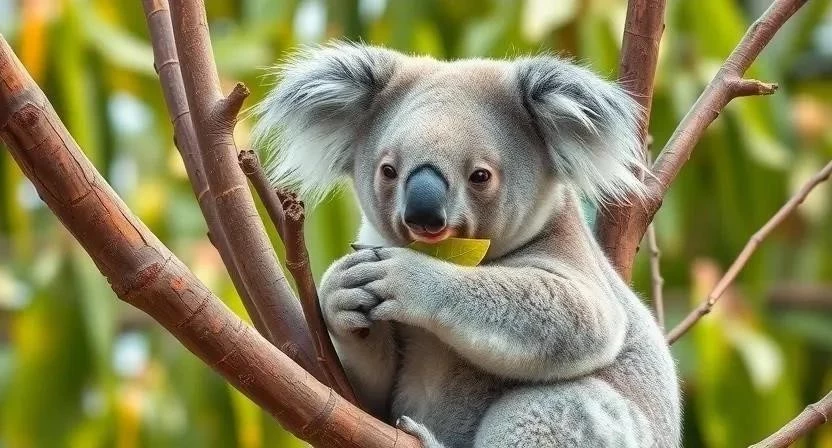 Коала – это милый и пушистый зверёк, который большую часть своей жизни проводит на деревьях эвкалипта. Коалы питаются исключительно листьями эвкалипта, которые содержат мало питательных веществ, поэтому они много спят – до 20 часов в сутки! Детеныши коал, которых называют «джоуи», живут в сумке матери около шести месяцев. Коалы – очень спокойные и медлительные животные. Однажды я видел коалу, которая мирно спала на ветке дерева, и это было невероятно трогательно. Они такие беззащитные и милые.