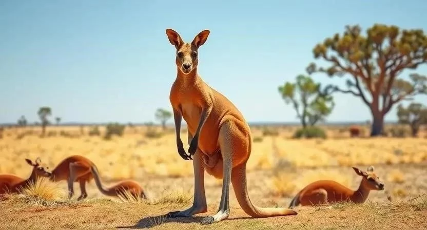 Кенгуру – визитная карточка Австралии. Эти крупные сумчатые травоядные известны своей способностью к прыжкам на огромные расстояния. Они обитают на большей части континента, предпочитая открытые травянистые равнины и лесистые местности. Продолжительность жизни кенгуру в дикой природе составляет около 6-12 лет, в неволе могут жить дольше. Вес взрослых самцов может достигать 90 кг, а рост в холке — до 1,8 метра, самки значительно меньше. Питаются они в основном травой и листьями. Охранный статус большинства видов — наименьшая угроза (LC), но некоторые подвиды могут быть уязвимы.