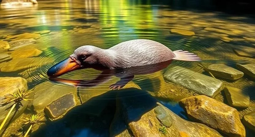 Утконос – одно из самых необычных животных в мире, сочетающее в себе черты млекопитающего, птицы и рептилии. Утконосы обитают в реках и озерах восточной Австралии и Тасмании. Они питаются водными беспозвоночными, такими как черви, ракообразные и моллюски. Утконосы имеют плоский клюв, похожий на утиный, и перепончатые лапы, которые помогают им плавать. Самцы утконосов обладают ядовитыми шпорами на задних лапах, которые используют для защиты и борьбы за самок. Утконосы – яйцекладущие млекопитающие, то есть они откладывают яйца, как птицы, но выкармливают своих детенышей молоком.