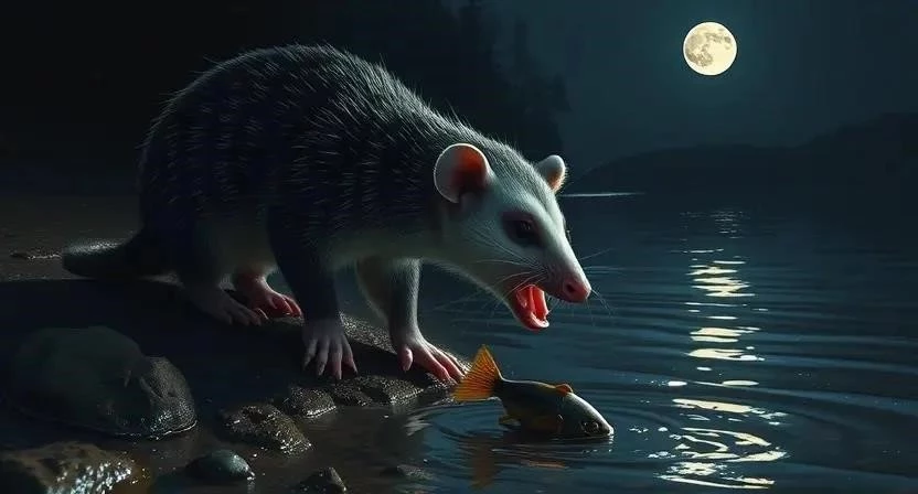 Водяной опоссум известен своей способностью к танатозу – имитации смерти. Когда опоссум чувствует угрозу, он может упасть на землю, высунуть язык, закрыть глаза и притвориться мертвым. Эта защита помогает ему избежать нападения хищников.