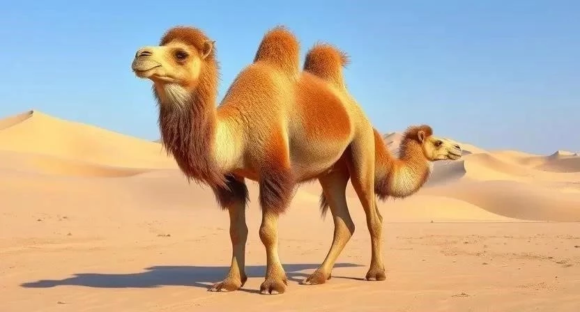 Двугорбый верблюд – крупное животное, отличающееся от своего собрата, одногорбого верблюда, наличием двух горбов на спине. Эти горбы служат резервуарами жира, которые животное использует в периоды нехватки пищи и воды. Шерсть бактриана густая и длинная, особенно в зимний период, что позволяет ему выдерживать суровые морозы. Окрас шерсти варьируется от светло-песочного до темно-коричневого.