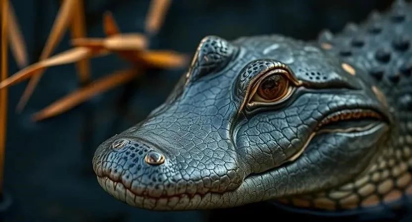 Китайский аллигатор – относительно небольшой представитель своего рода. Взрослые особи обычно достигают длины 1,5-1,8 метра, хотя некоторые самцы могут вырастать до 2 метров. Вес взрослого аллигатора колеблется от 39 до 55 кг. Тело покрыто прочными костными пластинами – остеодермами, которые служат защитой. Окрас варьируется от темно-серого до черного, часто с более светлыми пятнами и полосами. Морда у китайского аллигатора более широкая и короткая, чем у американского аллигатора. У него также меньше зубов, и они не так сильно видны, когда пасть закрыта.