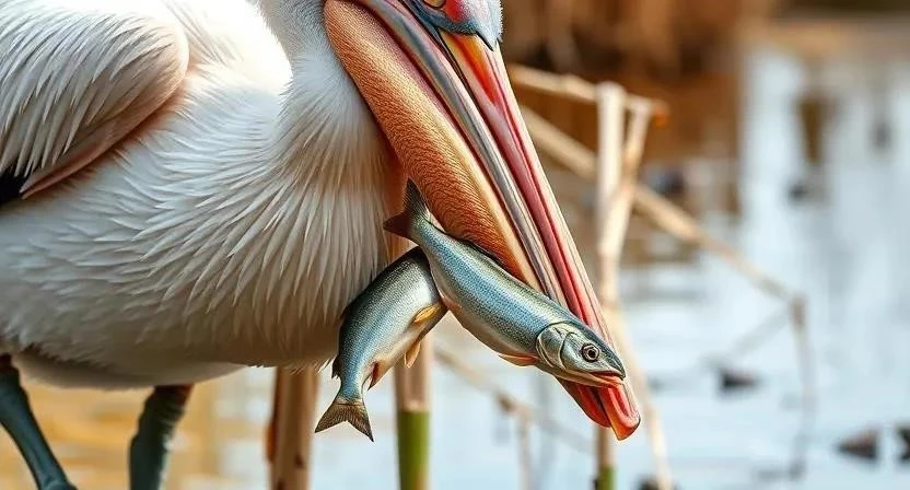 Пеликаны – хищные птицы, питающиеся в основном рыбой. Они используют свой большой мешок под клювом для ловли добычи. Существует несколько способов охоты: пеликаны могут плавать на поверхности воды и ловить рыбу клювом, нырять в воду и преследовать добычу под водой, а также охотиться группами, окружая косяки рыб. В рацион пеликанов также входят ракообразные, земноводные и мелкие птицы. Взрослый пеликан может съедать до 3 кг рыбы в день.
